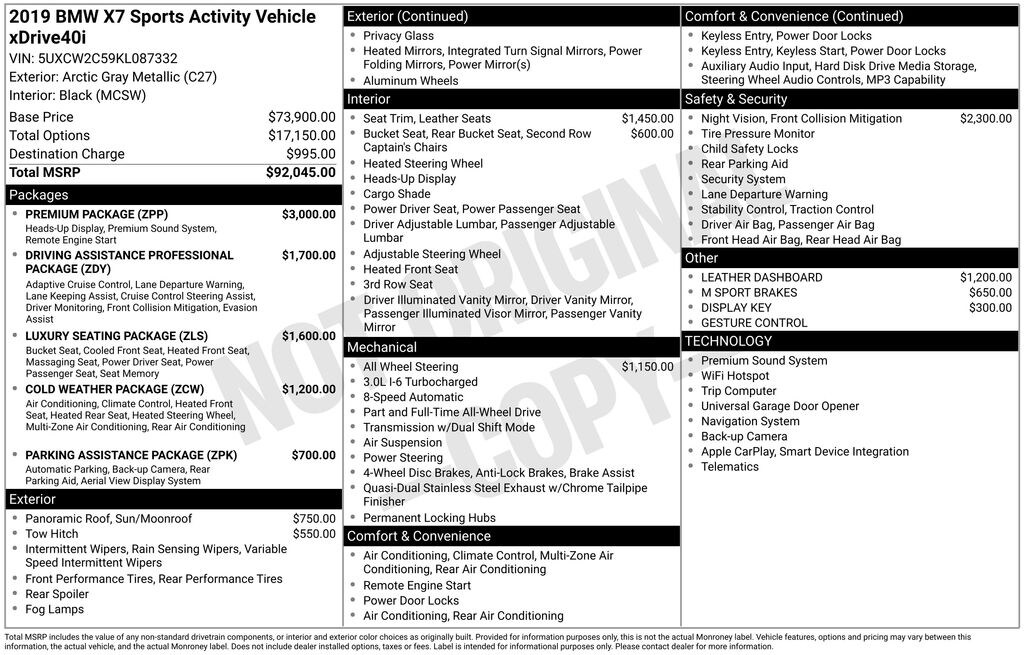 Arctic Gray Metallic 2019 BMW X7 xDrive40i AWD 8-Speed Automatic 3.0L I6 DOHC 24V