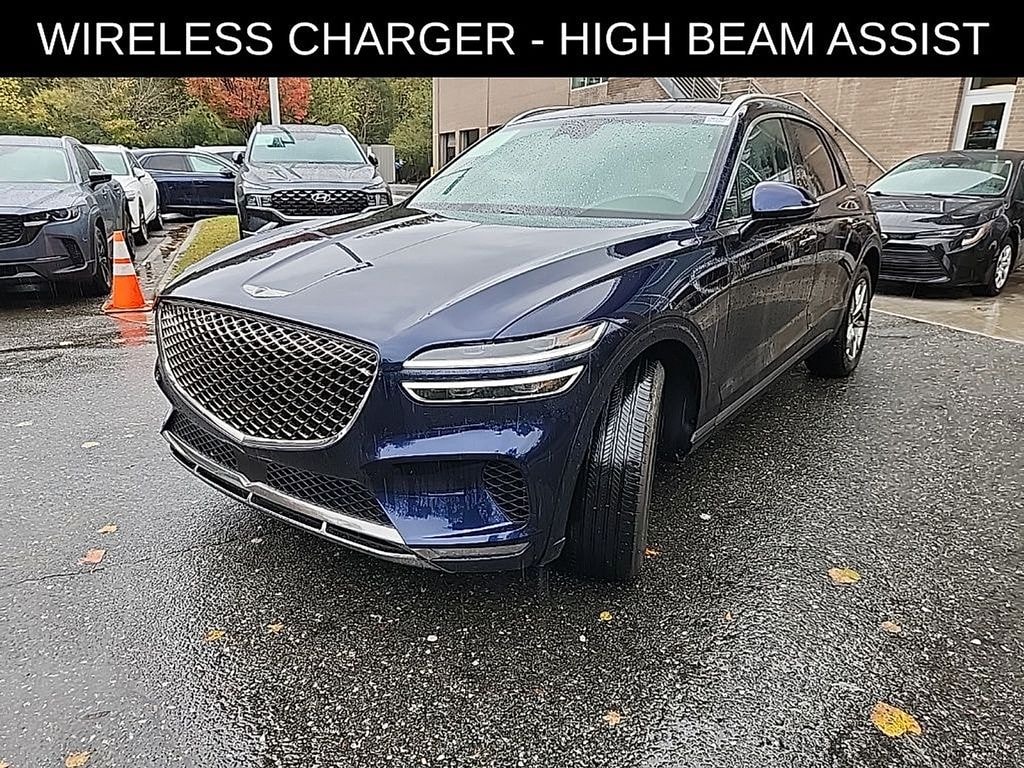 Capri Blue 2025 Genesis GV70 2.5L Inline 4 Turbo GDI (300 HP / 311 lb.-ft) AWD 8-speed Automatic. Equipped with: Heated Seats, Leatherette Seating Surfaces, Power Driver's Seat with 4-Way Power Lumbar, Power Front Passenger Seat, Smart Cruise Control with Highway Driving Assist, 14.5" Navigation System w/AM/FM/HD RadioTM, Apple CarPlay & Android AutoTM, Wireless Phone Charger, Fingerprint Authentication System, 19-inch Alloy Wheels, Power Hands-Free Smart Liftgate w/ Auto Open, Heated Outside Mirrors w/ Turn-Signal Indicator, High Beam Assist, Forward Collision-Avoidance Assist, Lane Keeping Assist, Lane Following Assist, Driver Attention Warning, Blind-Spot Collision Avoidance-Assist, Rear Cross-Traffic Collision Avoidance-Assist, Parking Distance Warning - Reverse, Rearview Camera, Safe Exit Assist, Rear Occupant Alert.