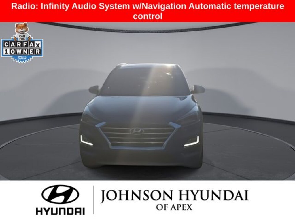 18" x 7.0J Alloy Wheels, Apple CarPlay & Android Auto, Auto-dimming Rear-View mirror, Automatic temperature control, Emergency communication system: Blue Link Connected Car Service (3-year complimentary subscription), Front dual zone A/C, Front fog lights, Fully automatic headlights, Garage door transmitter: HomeLink, Heated & Ventilated Front Bucket Seats, Heated door mirrors, Heated rear seats, Heated steering wheel, Leather Seat Trim, Leather Shift Knob, Navigation System, Option Group 01, Outside temperature display, Power driver seat, Power Liftgate, Power moonroof, Power passenger seat, Radio: Infinity Audio System w/Navigation.